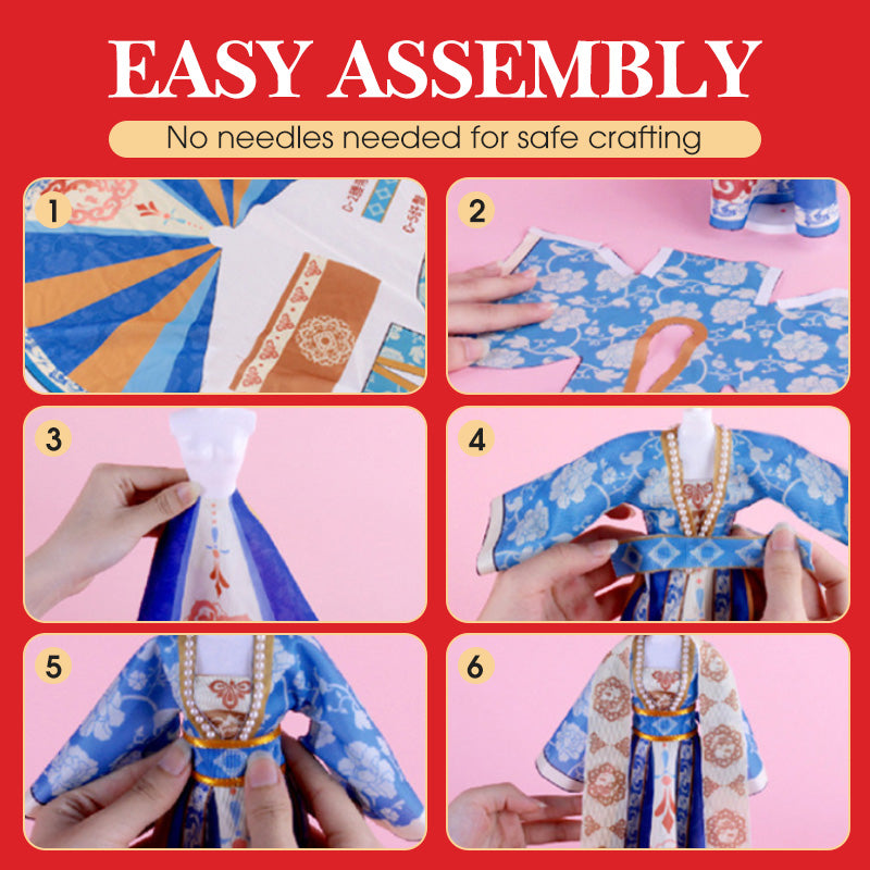EASY ASSEMBLY - Transform fabric into stunning clothing effortlessly, without the need for needles or thread, ensuring safety. The included step-by-step instructions guide kids in assembling traditional Chinese clothing, providing hours of creative and engaging fun throughout the process.