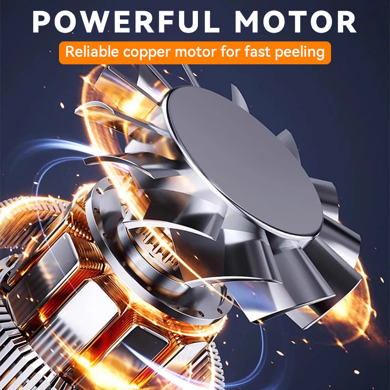POWERFUL COPPER WIRE MOTOR – Equipped with a high-performance copper wire motor, this electric peeler ensures efficient and fast peeling for various fruits and vegetables. The motor provides consistent power, allowing you to peel small fruits effortlessly without clogging or losing strength. Its durability and reliability make it a time-saving addition to any kitchen.