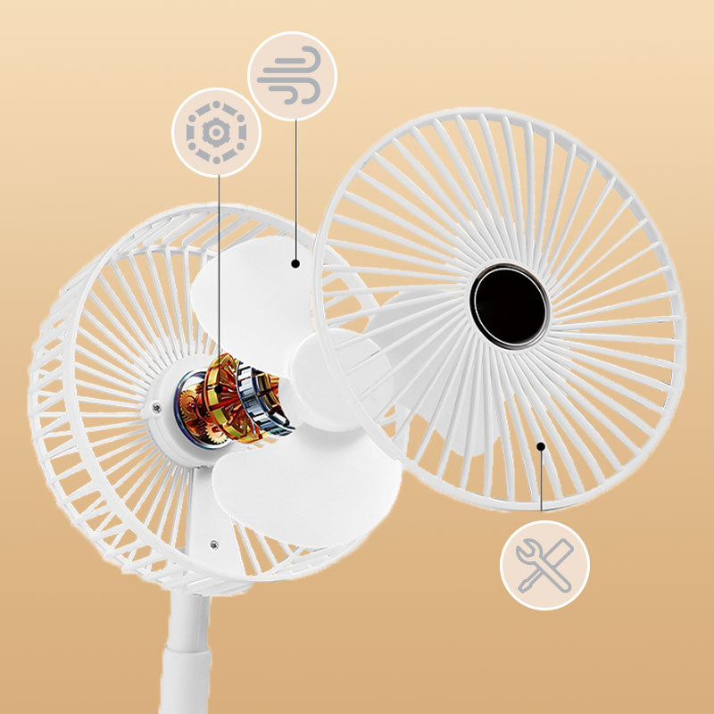 OMNIDIRECTIONAL AIR DELIVERY: The 180° angle can be adjusted, enabling the fan to evenly distribute cool air in different directions, improving the overall cooling effect.