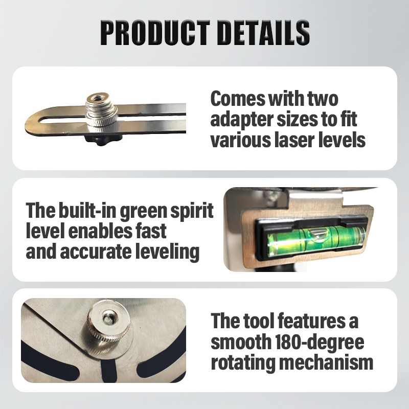 UNIVERSAL COMPATIBILITY WITH ADAPTERS INCLUDED: Comes with two adapter sizes to fit various laser levels, making it versatile for different devices. The secure attachment system keeps the laser firmly in place during operation, preventing slippage or misalignment.