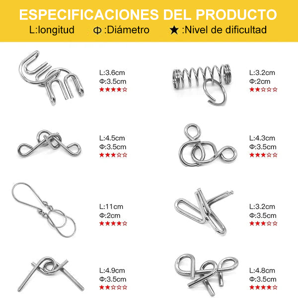 [Rompecabezas de metal de alta calidad] Para los niños, nuestros rompecabezas de metal prestan más atención a la calidad. Por lo tanto, nuestros juguetes de inteligencia IQ utilizan un proceso de formación integral para asegurar que los rompecabezas mentales sean suaves y no lastimen las manos. Hemos mejorado nuestros materiales, utilizando tres capas de niquelado para evitar el óxido o deformaciones.